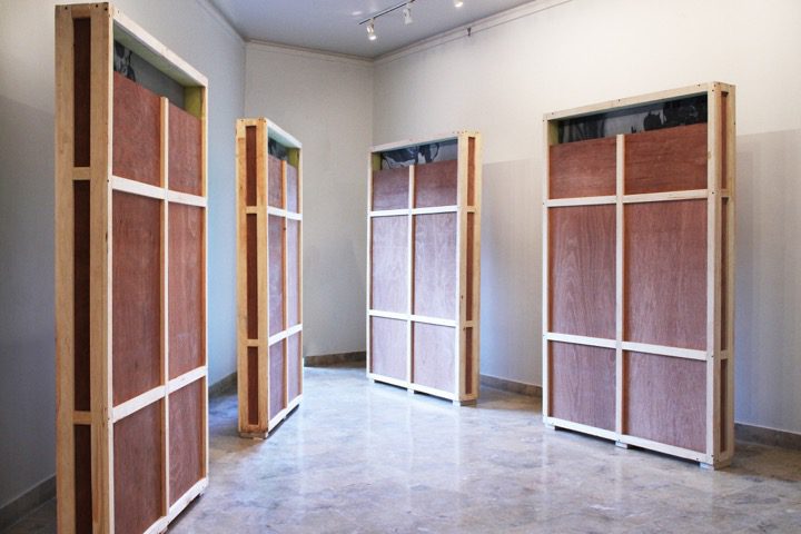 My first installation was Lik Likoti, which means hide and seek. It consisted of large (about 4 x 6ft) oil paintings on canvas, based on historical photographs. I placed each painting inside a loading box and that’s how they were presented. The viewer couldn’t see the whole painting, only a fragment of the painting was visible.