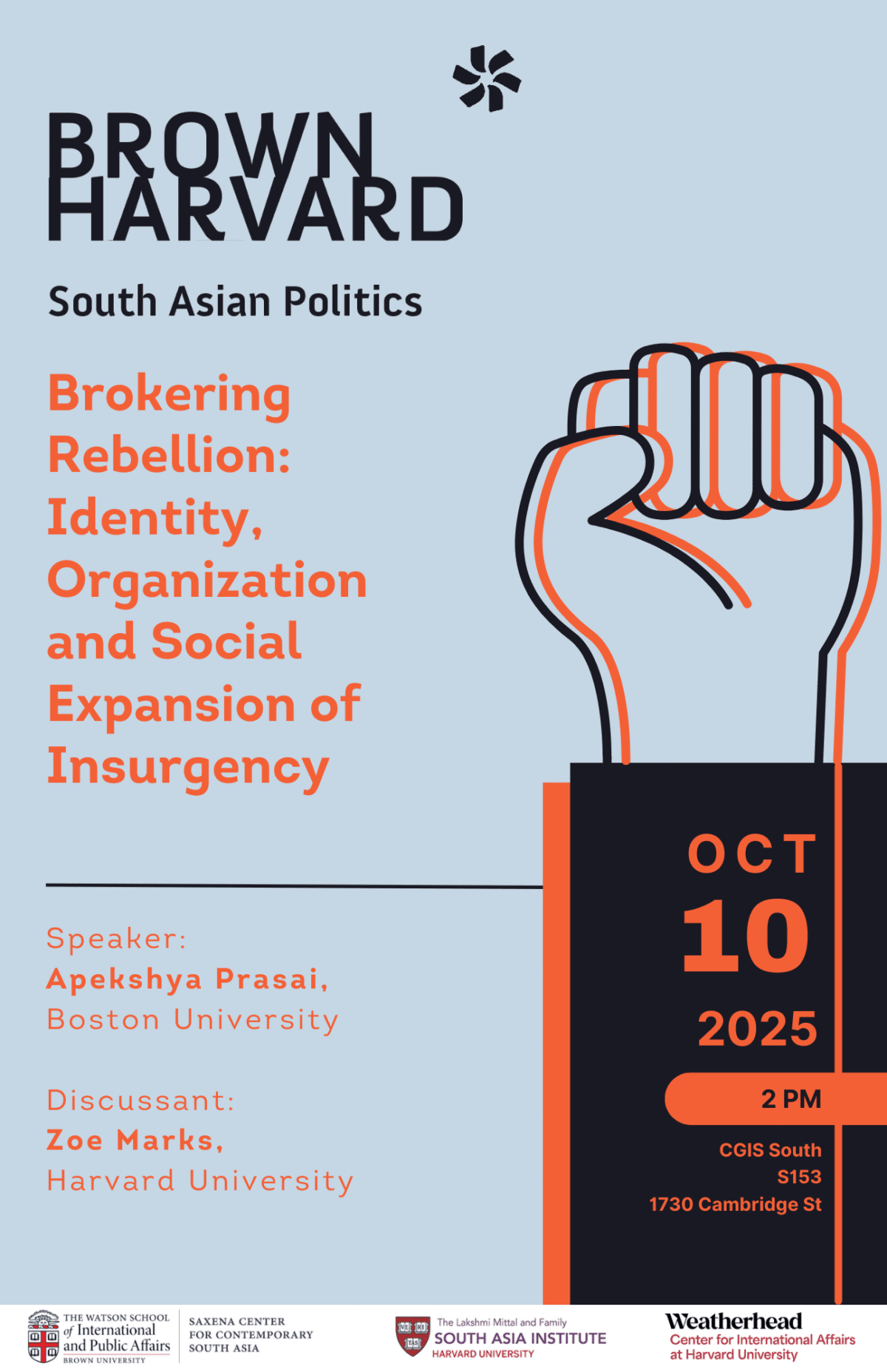 Please join us for a seminar on South Asian politics co-hosted by the Saxena Center at Brown University, the Weatherhead Center for International Affairs at Harvard University, and the Mittal Institute at Harvard University, featuring speaker Anustubh Agnihotri, Assistant Professor in the Department of Political Science at Ashoka University.