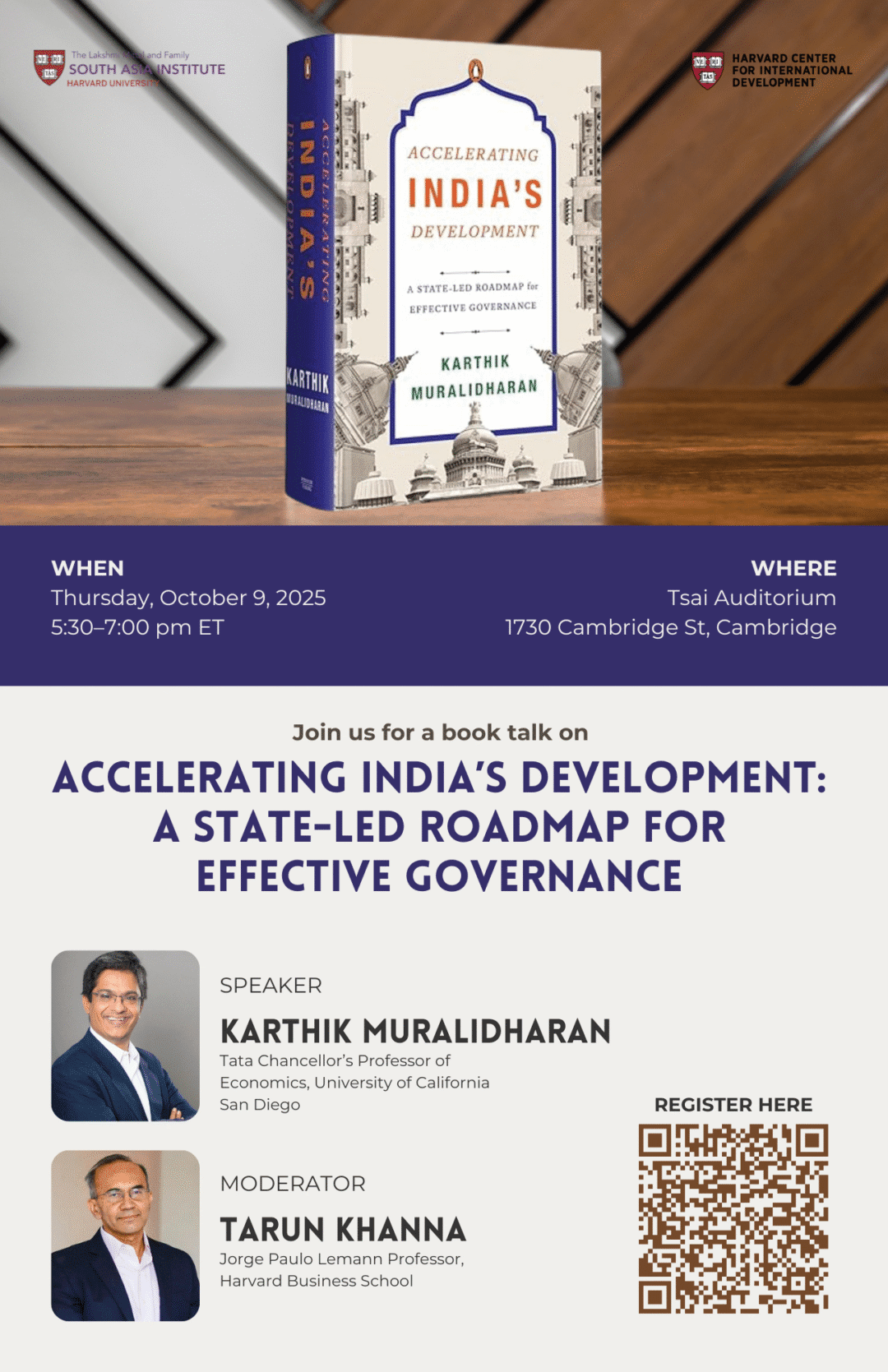 A book talk on “Accelerating India’s Development: A State-Led Roadmap for Effective Governance” with Prof. Karthik Muralidharan, Tata Chancellor’s Professor of Economics at the University of California San Diego