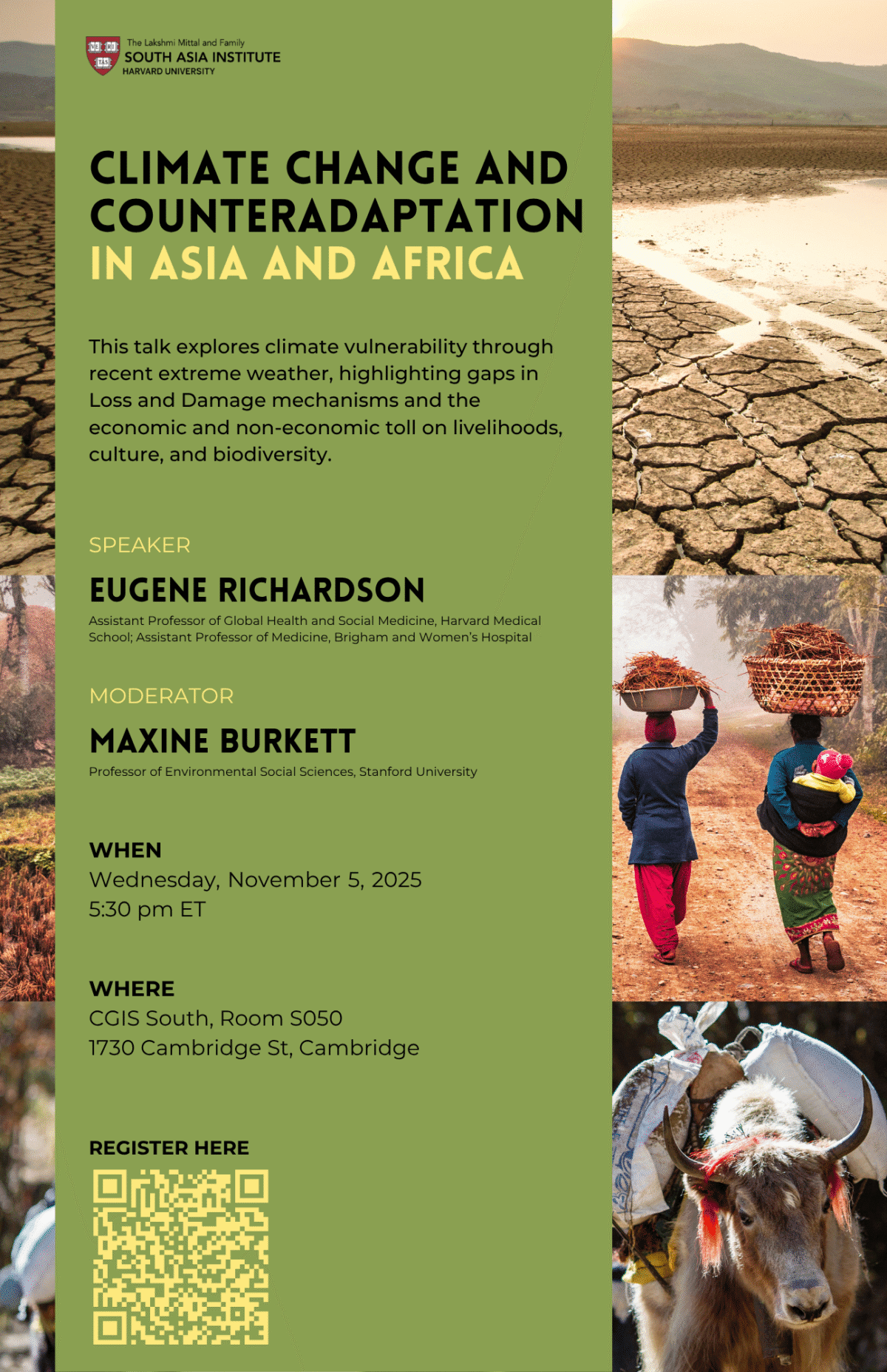 Join Eugene Richardson, M.D., Ph.D., Assistant Professor of Global Health and Social Medicine, Harvard Medical School; Assistant Professor of Medicine, Brigham and Women’s Hospital for a discussion on his Mittal Institute faculty climate grant project.