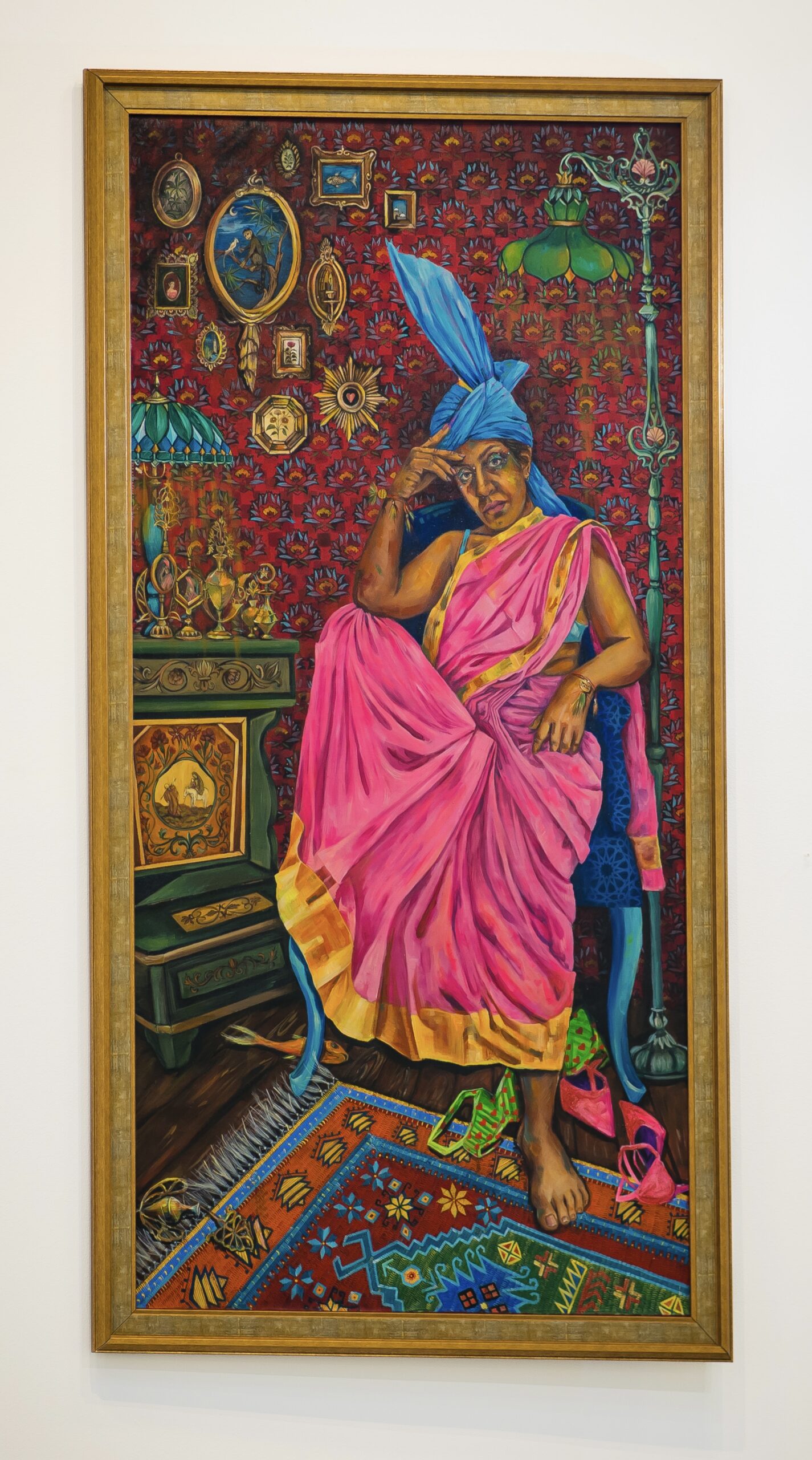 My practice has expanded both materially and conceptually, moving beyond painting into immersive, tactile, and spatial encounters. What began as two-dimensional explorations of gendered archetypes has grown into installations that merge devotional objects, found materials, and architectural remnants. I have become increasingly drawn to working with salvaged wood, textiles, and cultural symbols, transforming these into altar-like structures that question intimacy, ritual, and belonging.