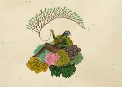 I am also inspired by Yakshinis, the female nature spirits who guard forests, rivers, caves, and sacred groves. Their role as protectors of natural resources, offering wisdom, abundance, and prosperity, resonates strongly with my interest in multispecies guardianship and ecological reciprocity.