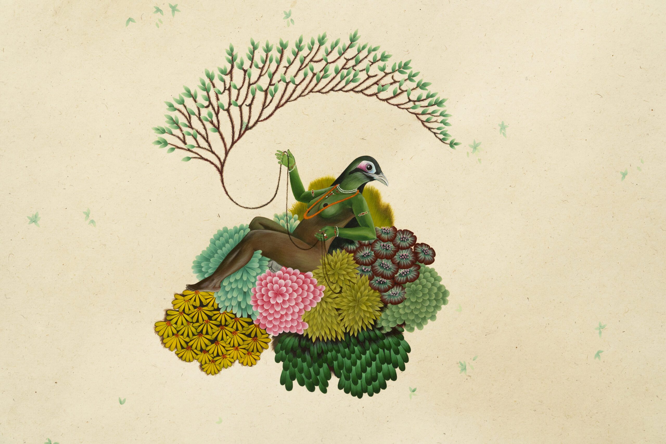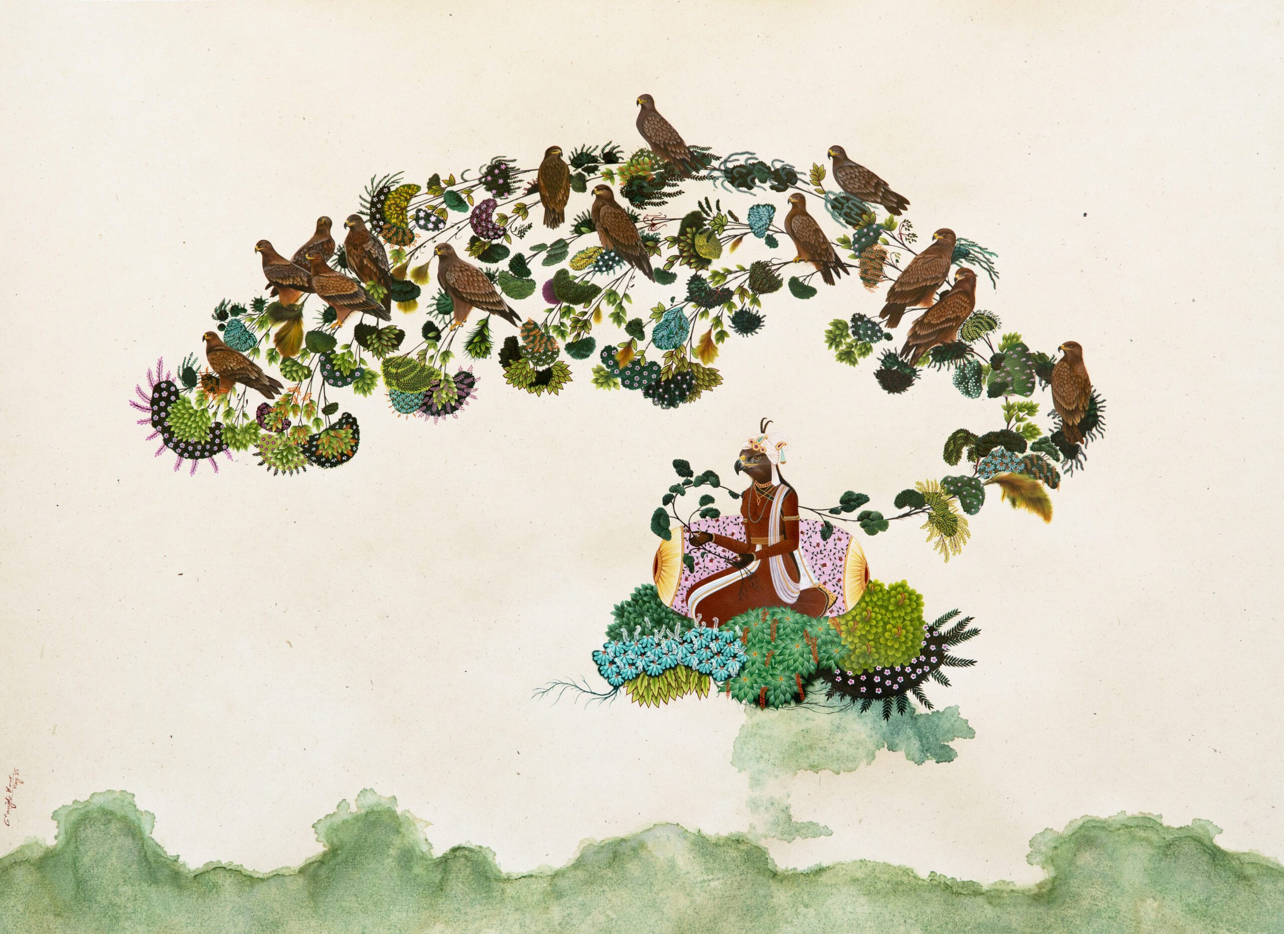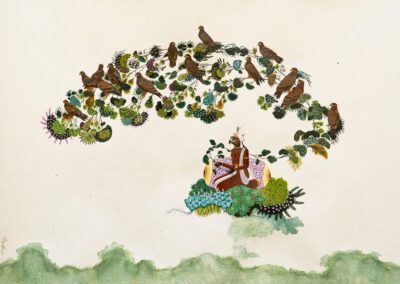 Beyond this grounding, access to archives and rare materials profoundly shaped my technique. Being able to study rare books in Harvard’s libraries and request viewings of Indian and Mughal miniatures in person had a lasting impact on my approach to texture, detail, and symbolic composition. The fellowship encouraged me to think expansively about research-driven art and strengthened my commitment to bridging mythology with contemporary ecological concerns. It marked a turning point, giving me the confidence to situate my practice within broader conversations on ecological justice, multispecies kinship, and post humanist imagination.